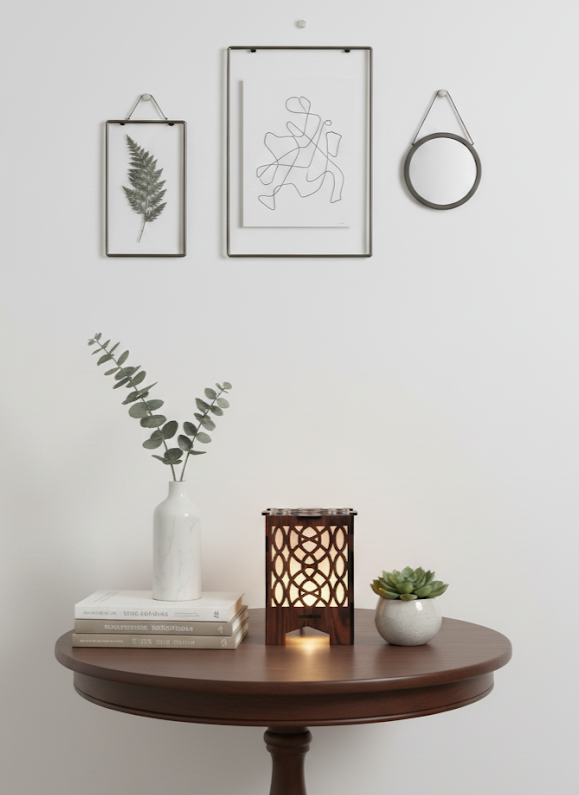 Assembly: Self Assembly Bulb Included: Yes Product Breadth: 11 cm Product Height: 15 cm Product Length: 11 cm Net Quantity (N): 1 Step-by-Step Assembly: Step 1: Start with Two Side Panels • Place the first two side panels upright. Align the edges carefully. Step 2: Insert the Bottom Panel • Slide the bottom panel into the holes on the two side panels. Step 3: Add the Remaining Side Panels • Insert the other two side panels into the holes on the bottom panel. Ensure all edges are aligned Step 4: Secure with the Top Panel • Place the top panel on the lamp to tighten the structure. Step 5: Your lamp is now ready to light up and enjoy! Package Contains: • 3 Lamps (Small, Medium, Large) • 3 Power Cords (pre-attached) • 3 COB LED (Warm White) • Premium wood with elegant design • Self-locking mechanism requires no glue • Complete set of 3 sizes • Festive and Everyday use • Lightweight & Portable Country of Origin: India
