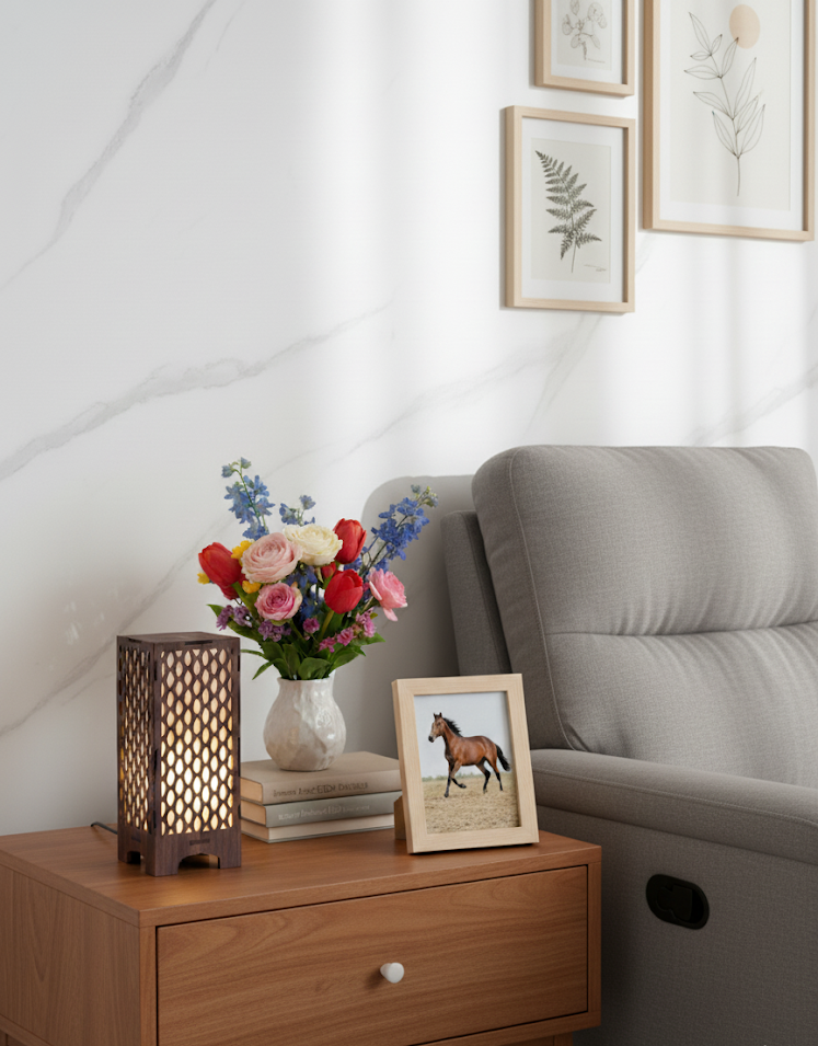 Assembly: Self Assembly Bulb Included: Yes Product Breadth: 11 cm Product Height: 20 cm Product Length: 11 cm Net Quantity (N): 1 Step-by-Step Assembly: Step 1: Start with Two Side Panels • Place the first two side panels upright. Align the edges carefully. Step 2: Insert the Bottom Panel • Slide the bottom panel into the holes on the two side panels. Step 3: Add the Remaining Side Panels • Insert the other two side panels into the holes on the bottom panel. Ensure all edges are aligned Step 4: Secure with the Top Panel • Place the top panel on the lamp to tighten the structure. Step 5: Your lamp is now ready to light up and enjoy! Package Contains: • 3 Lamps (Small, Medium, Large) • 3 Power Cords (pre-attached) • 3 COB LED (Warm White) • Premium wood with elegant design • Self-locking mechanism requires no glue • Complete set of 3 sizes • Festive and Everyday use • Lightweight & Portable Country of Origin: India
