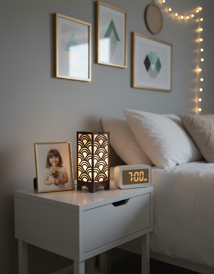 Assembly: Self Assembly Bulb Included: Yes Product Breadth: 11 cm Product Height: 15 cm Product Length: 11 cm Net Quantity (N): 1 Step-by-Step Assembly: Step 1: Start with Two Side Panels • Place the first two side panels upright. Align the edges carefully. Step 2: Insert the Bottom Panel • Slide the bottom panel into the holes on the two side panels. Step 3: Add the Remaining Side Panels • Insert the other two side panels into the holes on the bottom panel. Ensure all edges are aligned Step 4: Secure with the Top Panel • Place the top panel on the lamp to tighten the structure. Step 5: Your lamp is now ready to light up and enjoy! Package Contains: • 3 Lamps (Small, Medium, Large) • 3 Power Cords (pre-attached) • 3 COB LED (Warm White) • Premium wood with elegant design • Self-locking mechanism requires no glue • Complete set of 3 sizes • Festive and Everyday use • Lightweight & Portable Country of Origin: India