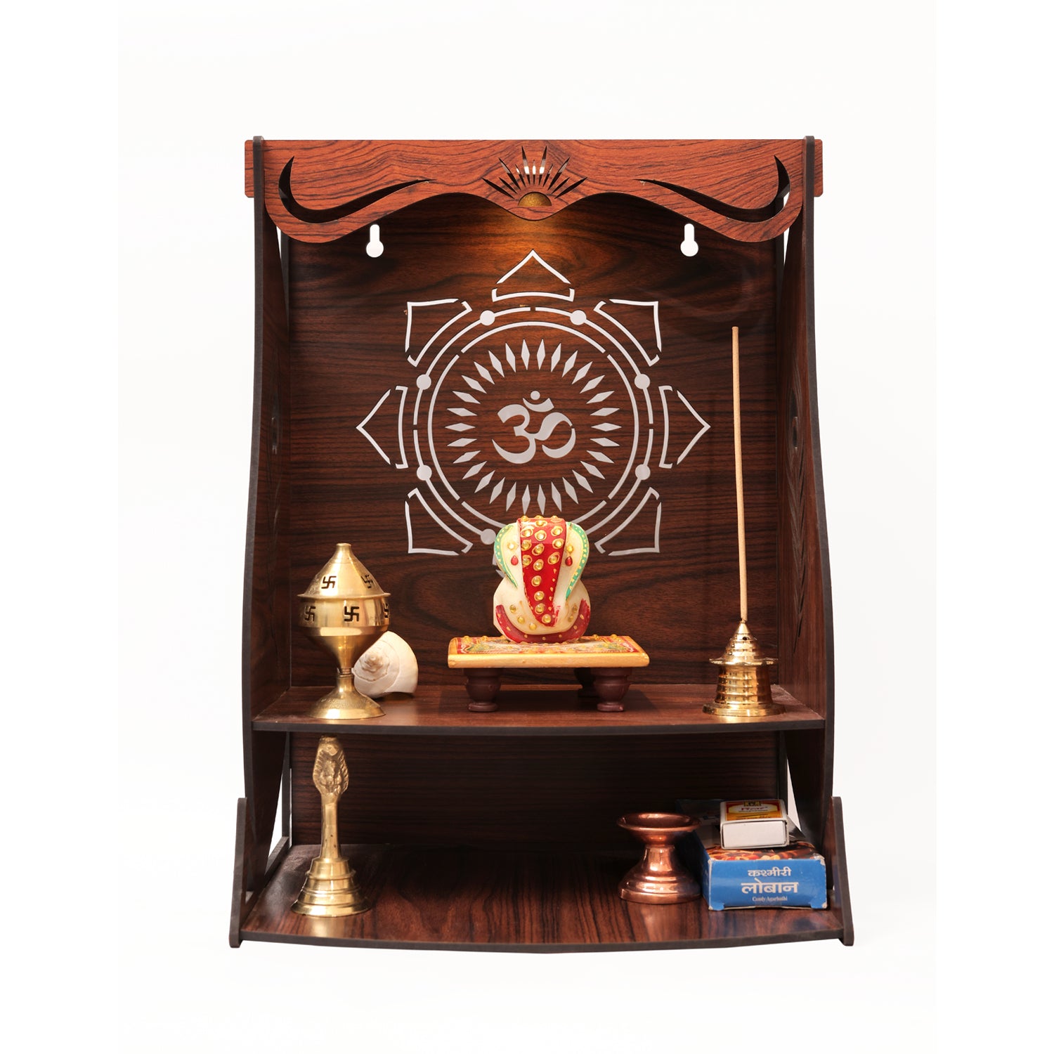 Real Wood Art Tej Mandir Brown Wall Mounted Wooden Temple for Home, Office