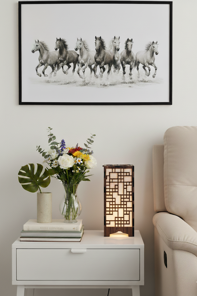 Real Wood Art Trellis Block Series Table Lamp 11cmx11cmx26cm