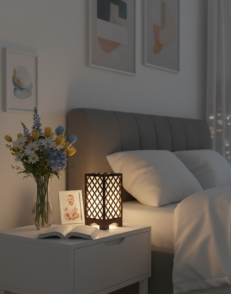 Assembly: Self Assembly Bulb Included: Yes Product Breadth: 11 cm Product Height: 15 cm Product Length: 11 cm Net Quantity (N): 1 Step-by-Step Assembly: Step 1: Start with Two Side Panels • Place the first two side panels upright. Align the edges carefully. Step 2: Insert the Bottom Panel • Slide the bottom panel into the holes on the two side panels. Step 3: Add the Remaining Side Panels • Insert the other two side panels into the holes on the bottom panel. Ensure all edges are aligned Step 4: Secure with the Top Panel • Place the top panel on the lamp to tighten the structure. Step 5: Your lamp is now ready to light up and enjoy! Package Contains: • 3 Lamps (Small, Medium, Large) • 3 Power Cords (pre-attached) • 3 COB LED (Warm White) • Premium wood with elegant design • Self-locking mechanism requires no glue • Complete set of 3 sizes • Festive and Everyday use • Lightweight & Portable Country of Origin: India